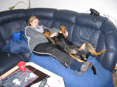 Mmmmh, riechen lecker die Schuhe. Tja, habe halt mein Herrchen zum Fressen gerne!! Und der Ball - der ist ja dagegen richtig langweilig! |